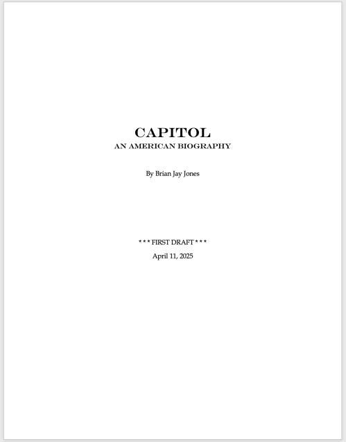 We’re on a fast enough track, too, that I should soon have a cover to show you, along with a title change. Yeah, Capitol: A Biography was the title I pitched it under, and the title that kept me in the proper mindset while writing–but now it’s having its title changed and I know what it is and I love it. But that’ll all have to wait.