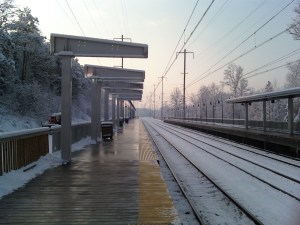 The snow that fell on Tuesday night was more a pretty snow than an inconvenient one — and even with six inches of the stuff on the ground, the roads were clear. Not that it mattered to me that much — taking Barb’s advice, I had stayed at the Microtel near the airport, meaning I only had to make the mile-long sprint to the train station. I headed for the station at 8:15 or so, lugging a full box of books that had been presold for the Thursday night event, and cramming the rest into my suitcase, so that it was more full of books than clothes.