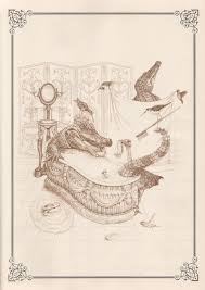 Inside that book is a drawing of two crocodiles lounging in a sumptuous, vaguely Victorian setting. Jim was fascinated. “It was the juxtaposition of this reptilian thing in this fine atmosphere that intrigued me,” he said. That’s the moment The Dark Crystal first sparked to life — in its nascent form, at least — in Jim’s imagination.